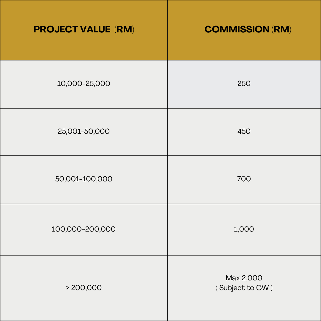Earn commission based on project value confirmed.